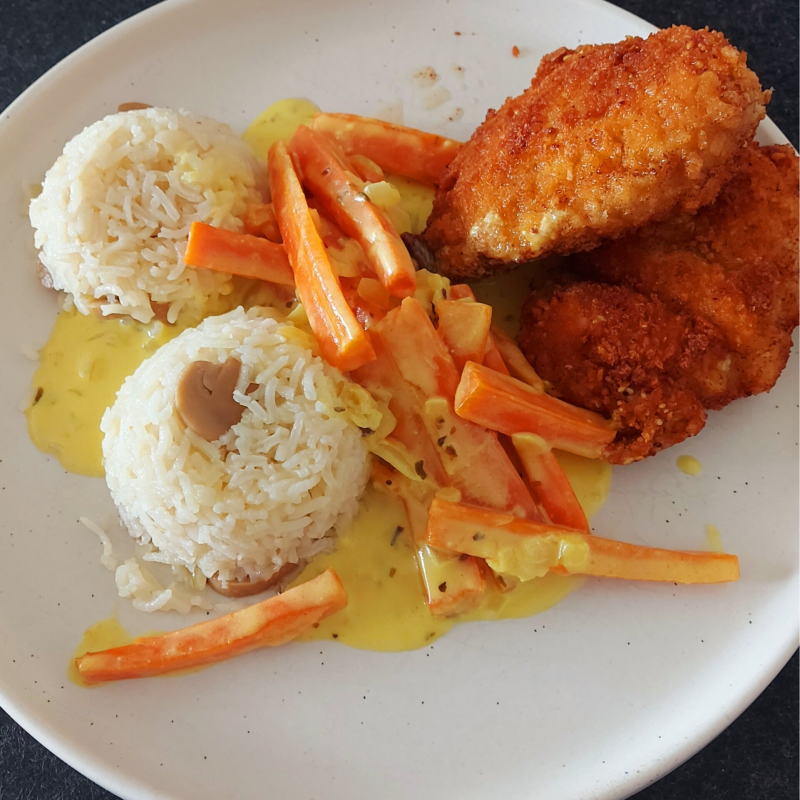 Hühnchenschnitzel mit Möhrengemüse und Basmatireis